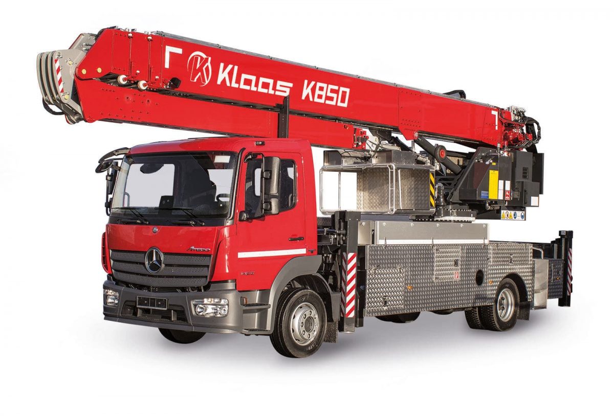 Model dźwigu na samochodzie ciężarowym K850 posiada maks. wysokość haka na poziomie 36 m, a długość wysunięcia masztu 37,6 m. Takie parametry zapewniają, że jest on w stanie sprostać większości wymagań stawianych mu jako wysokospecjalistycznemu dźwigowi przez dekarzy i cieśli. Nadzwyczajny wysięg sięgający aż 31 m z ładunkiem o ciężarze 500 kg sprawia, że maszyna ta jest również chętnie kupowana przez firmy budujące domy z bali, budynki z elementów prefabrykowanych lub powierzchni halowych.