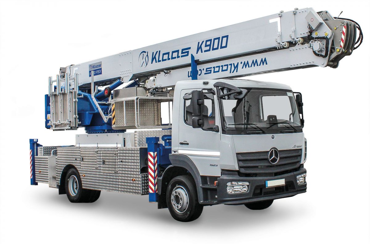 Model K900 zbudowany na samochodzie ciężarowym o DMC do 13,5 tony i maksymalnej wysokości haka 38 m charakteryzuje się niezwykłym zapasem osiągów, co jest odczuwalne w pracy z tym dźwigiem. Jego maksymalny udźwig 5 000 kg pozwala na transport materiałów w odległości do 6,50 m i na wysokości 8,20 m od wieńca obrotowego. Podwójnie hydraulicznie teleskopowany wierzchołek będący na wyposażeniu tego dźwigu, pozwoli operatorowi z łatwością dosięgnąć najdalsze przeciwległe strony budowy jak również rozłożyć dźwig w sytuacjach ograniczania przestrzennego.